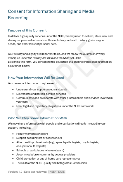 This essential policy and procedure pack helps meet the NDIS Practice Standards – Verification (low risk providers). This pack includes clear, audit-ready templates tailored to the simplified requirements of verification registration. Comes with a User Guide to help you confidently prepare for audit and implement quality systems from day one.